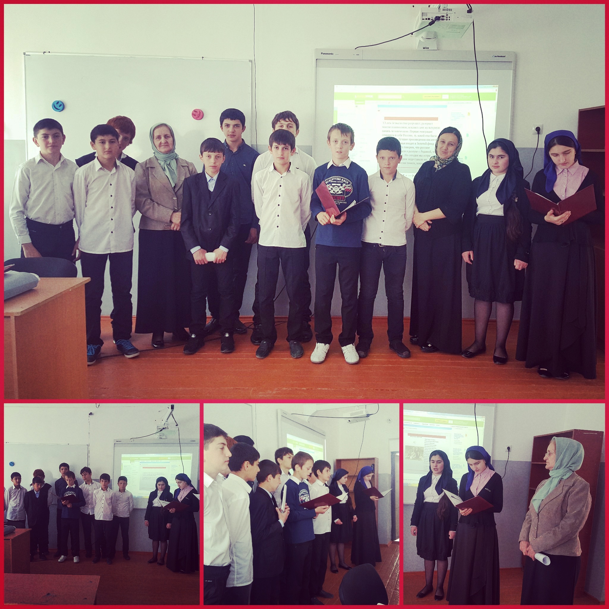 28.04.2016В МБОУ "СОШ с.А.Шерипова" Автаева Тумиша Хасановна с применением презентации провела в 8-х классах Урок- концерт по русской литературе на тему: " Поэты русского зарубежья о Родине""Светишь мне, Россия только ты"(К.Больмонт).Цели урока: познакомить учащихся с поэтами русского зарубежья, восстанавливая культурную память человеческую; Работать над выразительным чтением стихов.Оформление класса: выставка портретов поэтов и писателей- эмигрантов, книжная выставка, картины с изображением Парижа.Учащиеся выразительно читали стихи поэтов-эмигрантов: Рассказы ведущих, чтение стихов учащихся сопровождалась звучанием романса в исполнении А.Малинина "Сент-Женевьев-де-Буа", песней "Елисейские поля" в исполнении Джо Дассени. Закончился концерт прослушиванием песни в исполнении Вероникой Долиной "Не пускайте поэта в Париж".