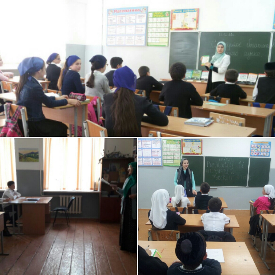 03.12.2016Учителя русского языка и литературы МБОУ «СОШ с.А.Шерипова» провели единый всероссийский урок, посвященный дню русского языка по теме «Великий и могучий русский язык». Ученики 5а и 5б классов (учитель Тимбулатова Ж.М) стали участниками увлекательной игры «Знаешь ли ты русский язык» ; в 7 классе проведен урок презентация «Как простые слова становятся царственными» (Сулейманова Т.С) .