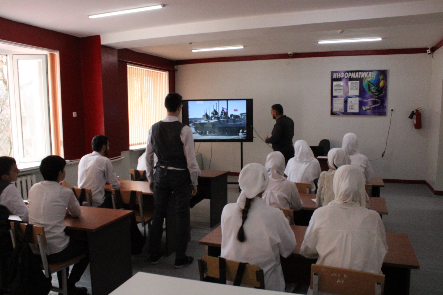 Учитель истории и обществознания Идрисов И.С. провел с учащимися 11 класса беседу посвяшенную спецоперации на Украине.