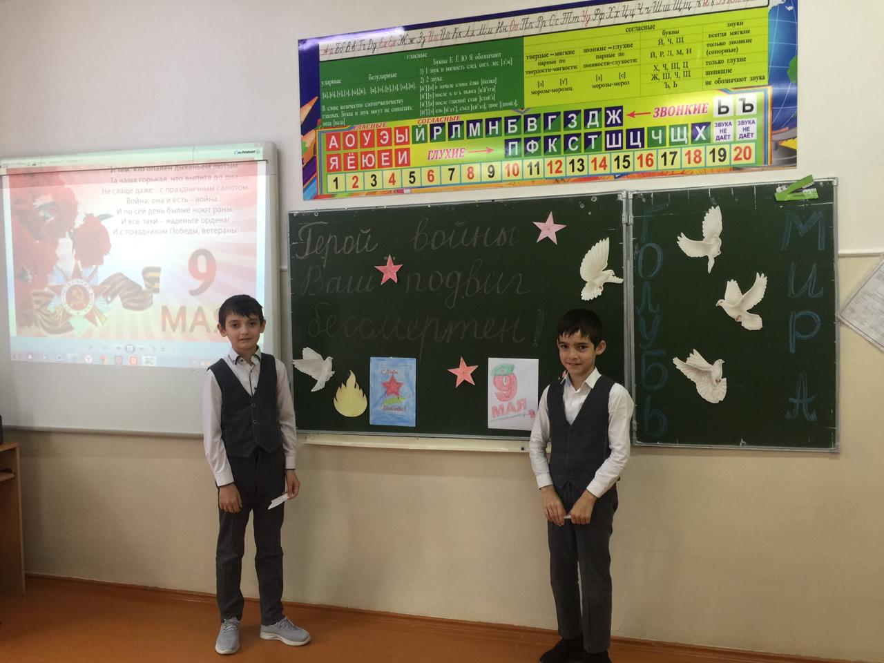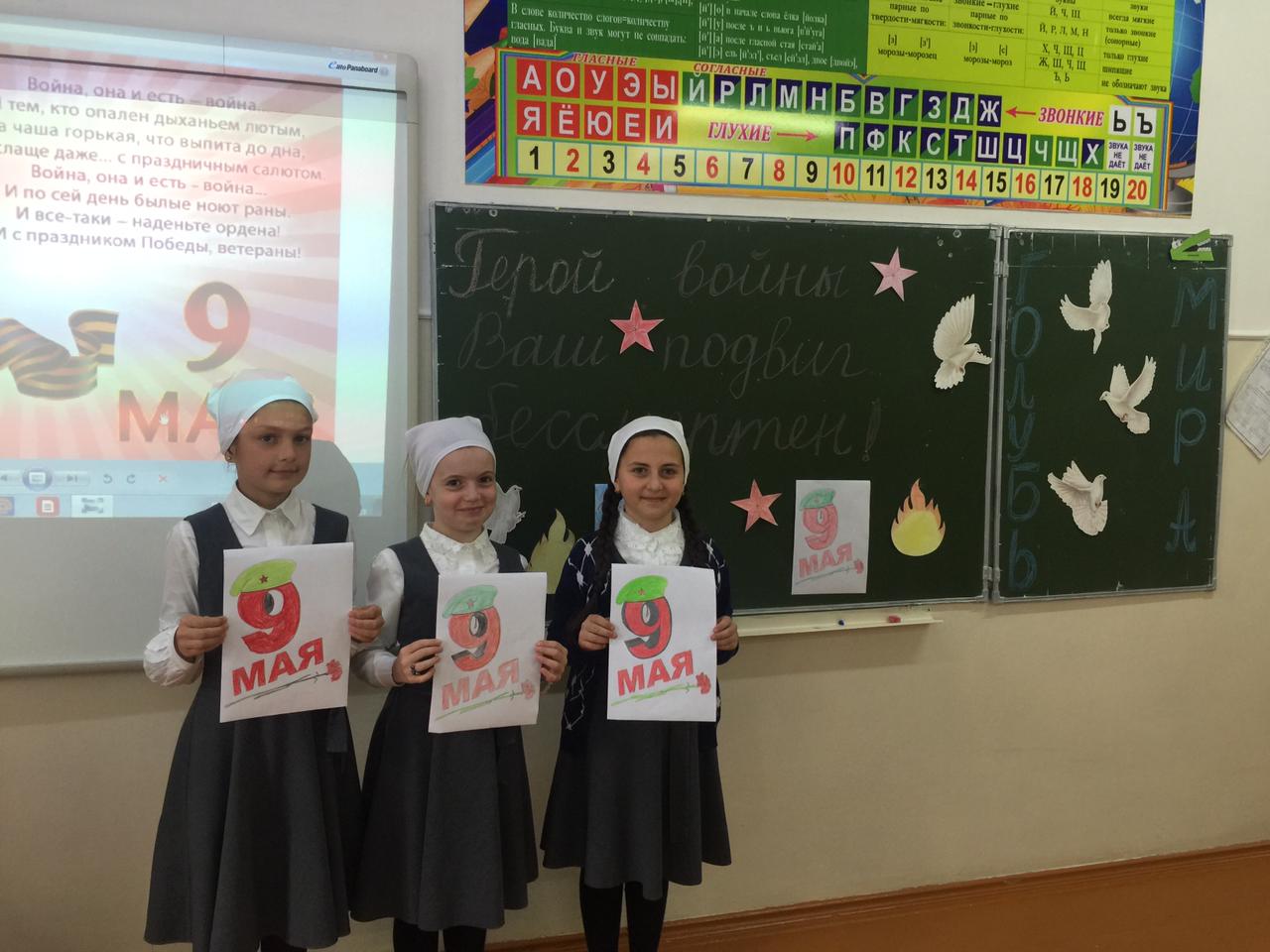 В преддверии праздника, в 1-8 классах прошли классные часы, посвященные ко Дню Победы Великой Отечественной войны: «Мы помним! Мы гордимся!», «Весна Победы», «Нет Войне!», «Помнить, чтобы жить!».