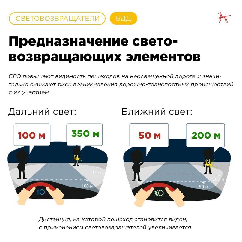 14.05.2024🚔🚔 Начиная с 1 июля 2015 года в Российской Федерации пешеходы обязаны иметь световозвращатели в следующем случае: 🔴вне населенного пункта; 🔴при переходе дороги и движении по обочине или краю проезжей части; 🔴в тёмное время суток или в условиях недостаточной видимости. Кроме того, согласно изменениям в ПДД, пешеход обязан не просто иметь при себе световозвращающие элементы, но и обеспечивать их видимость для водителей. За игнорирование данных требований предусмотрена административная ответственность в виде штрафа. Что такое световозвращатель, и как его правильно использовать, читайте в карточках ⤴️ ❗️Берегите себя и не забывайте ежедневно проводить беседы с детьми и контролировать наличие у них СВЭ на одежде и аксессуарах.